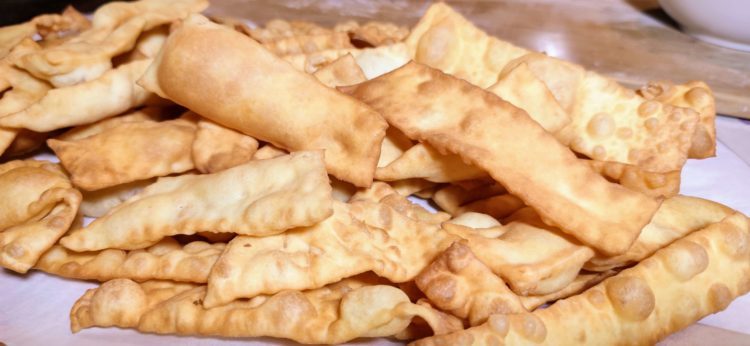 Sicuramente la risposta sarebbe: Le chiacchiere di Carnevale o Frappe, Bugie o Cenci e tanti altri nomi tipici in base alla zona dello stivale in cui ci si trova.